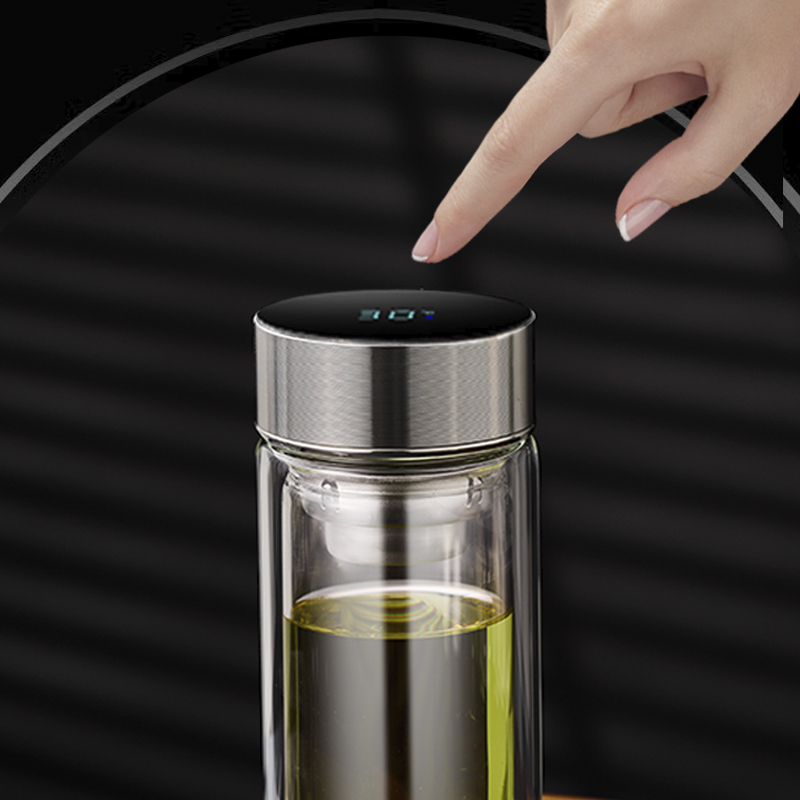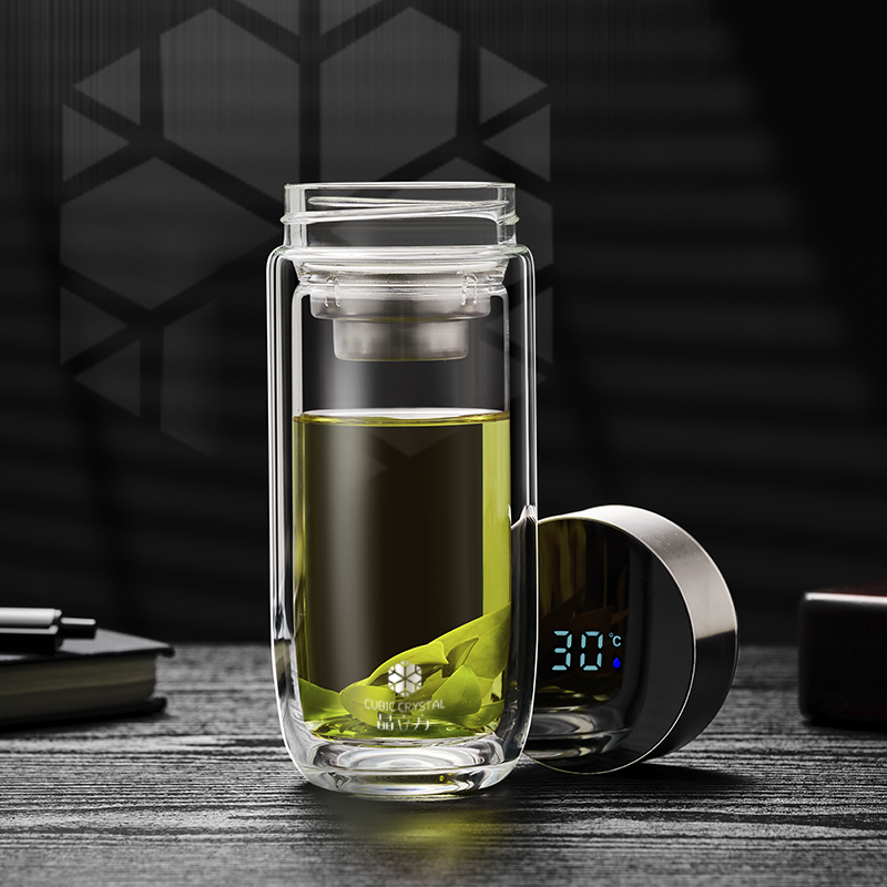 智能測溫 高硼硅雙層玻璃杯